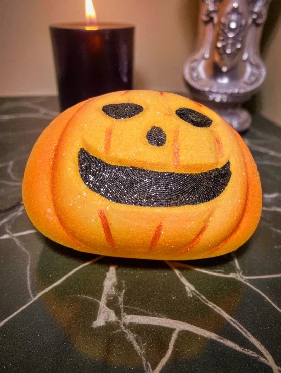 Capture the spirit of the season! This Festive Pumpkin Bath Bomb is scented in cosy Winter Cherry & Ginger Frosting, the perfect spicy-sweet treat for your tub.
